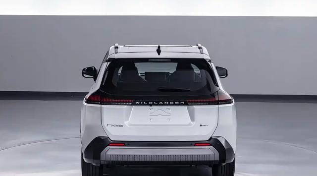 侧身整体造型也很硬朗,整个车窗区域进行了熏黑处理,与车身配色形成双色搭配,采用黑色车身包围、造型别致的轮毂样式、弯折的下侧裙线条等设计。尾部采用贯穿式尾灯设计,内部分布着长短不一的竖置光源,底部护板也采用了竖置装饰条,起到了上下呼应的效果。